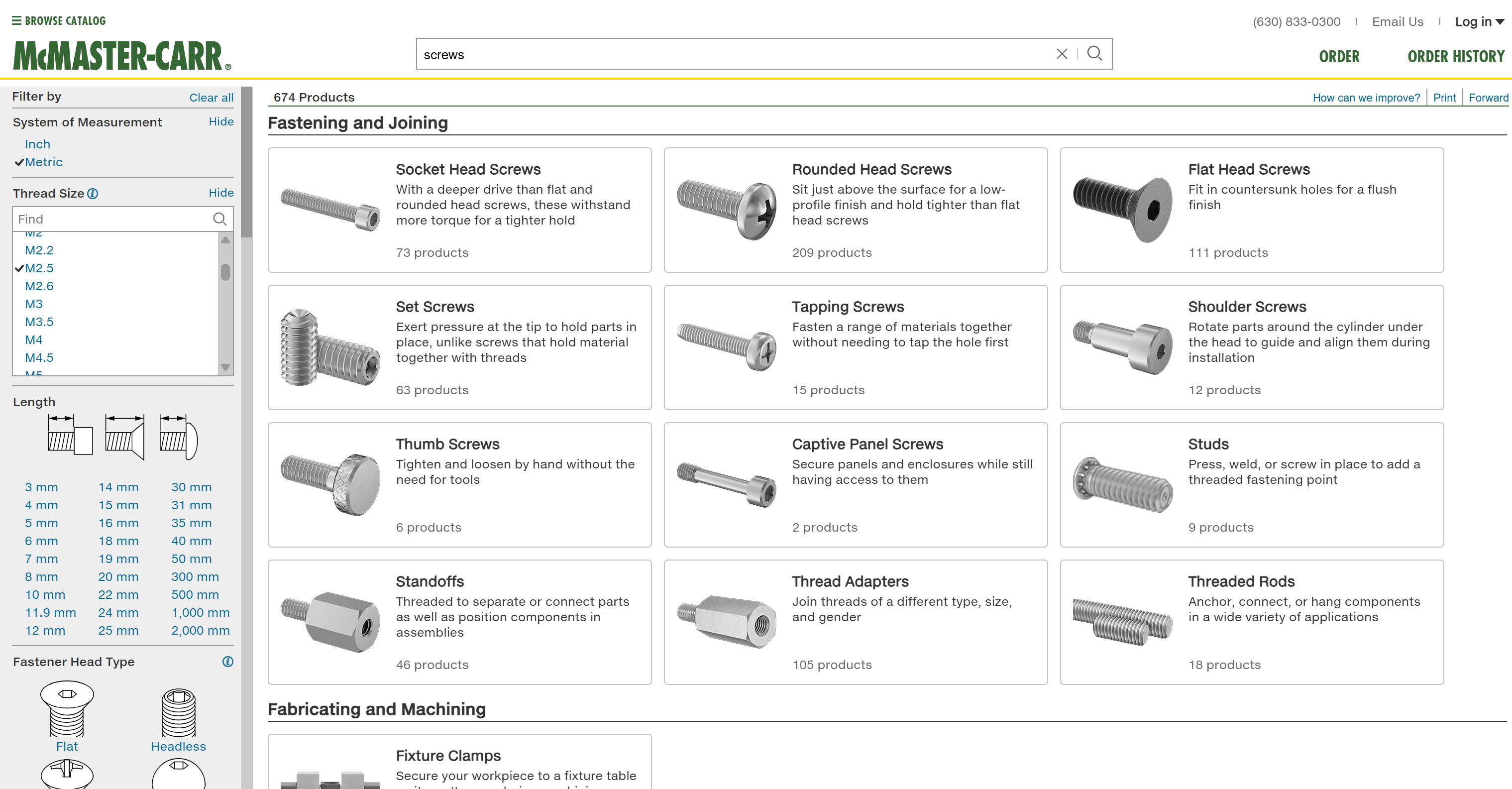 McMaster-Carr is een uitstekende bron om echte schroeven in je ontwerp te gebruiken: